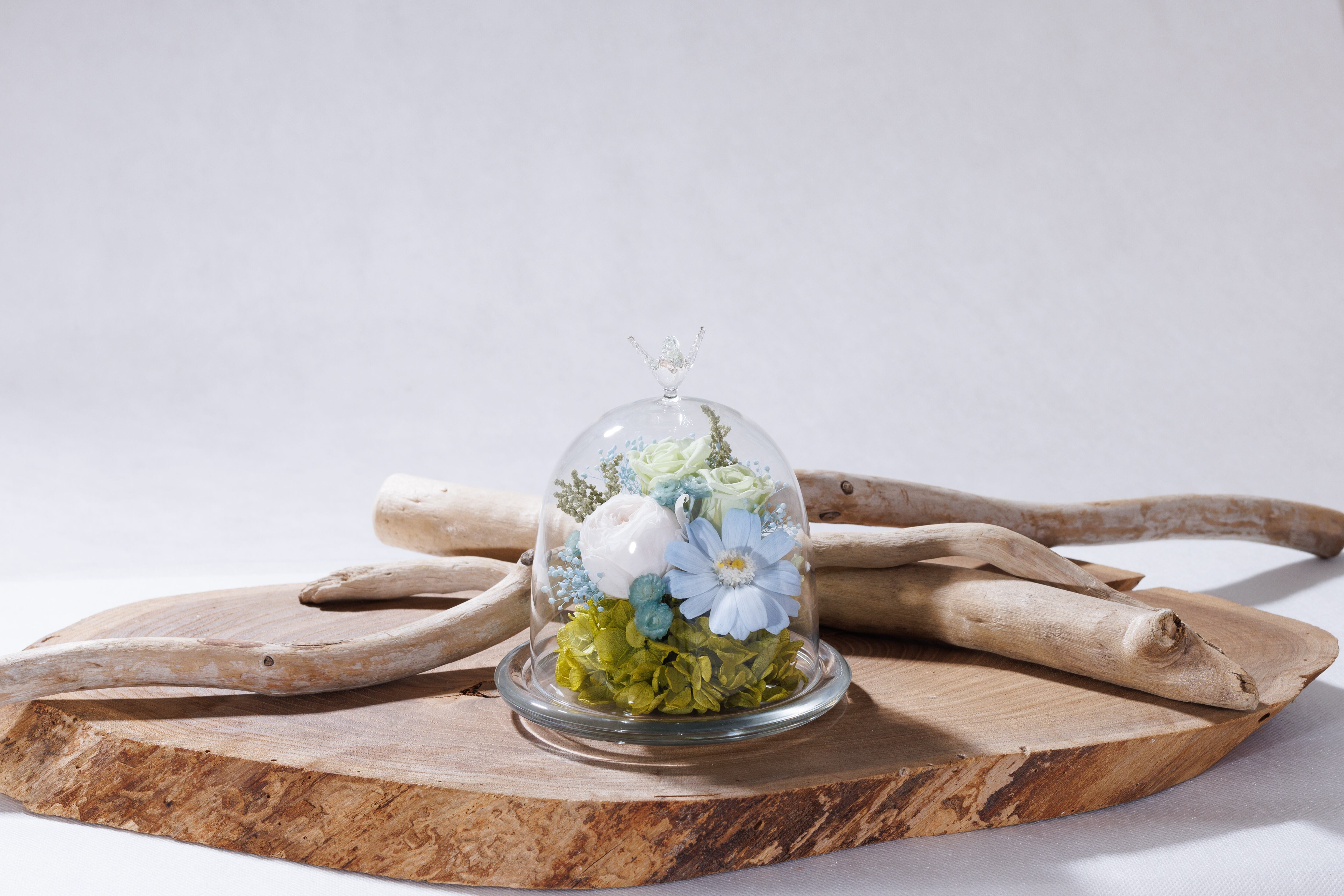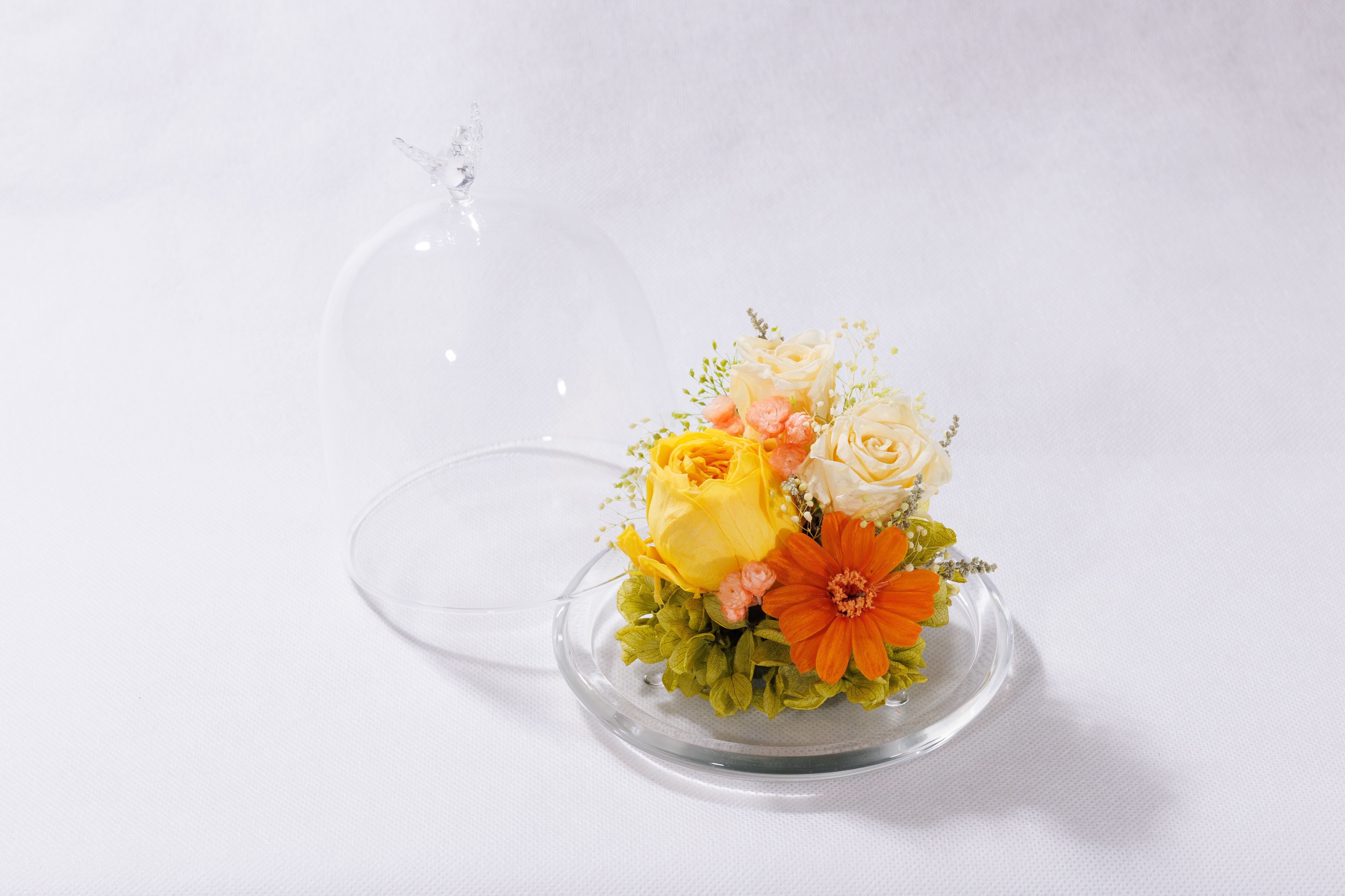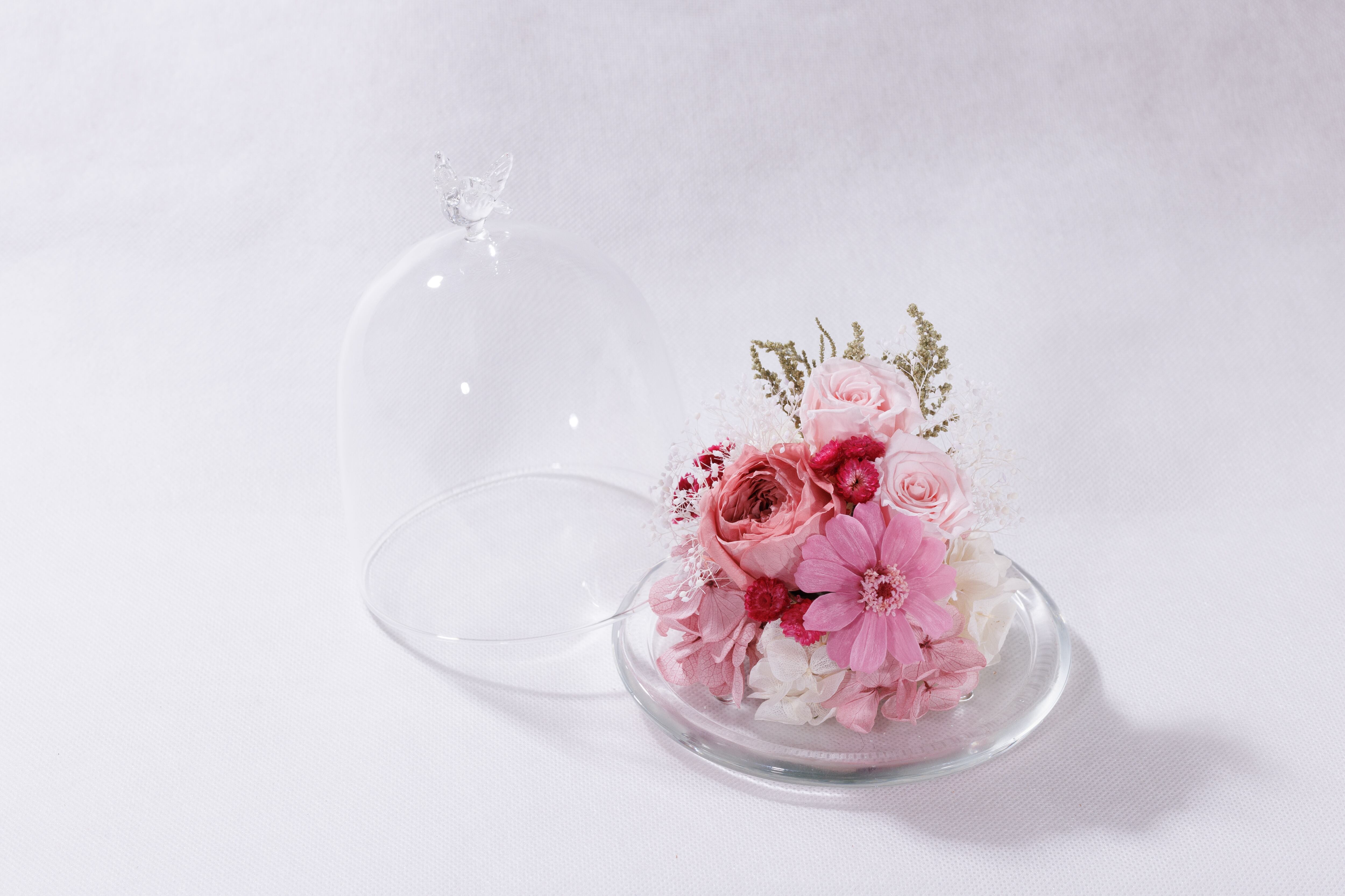しかし、このようにガラスドームの中に入っているので長い間お楽しみいただけます。