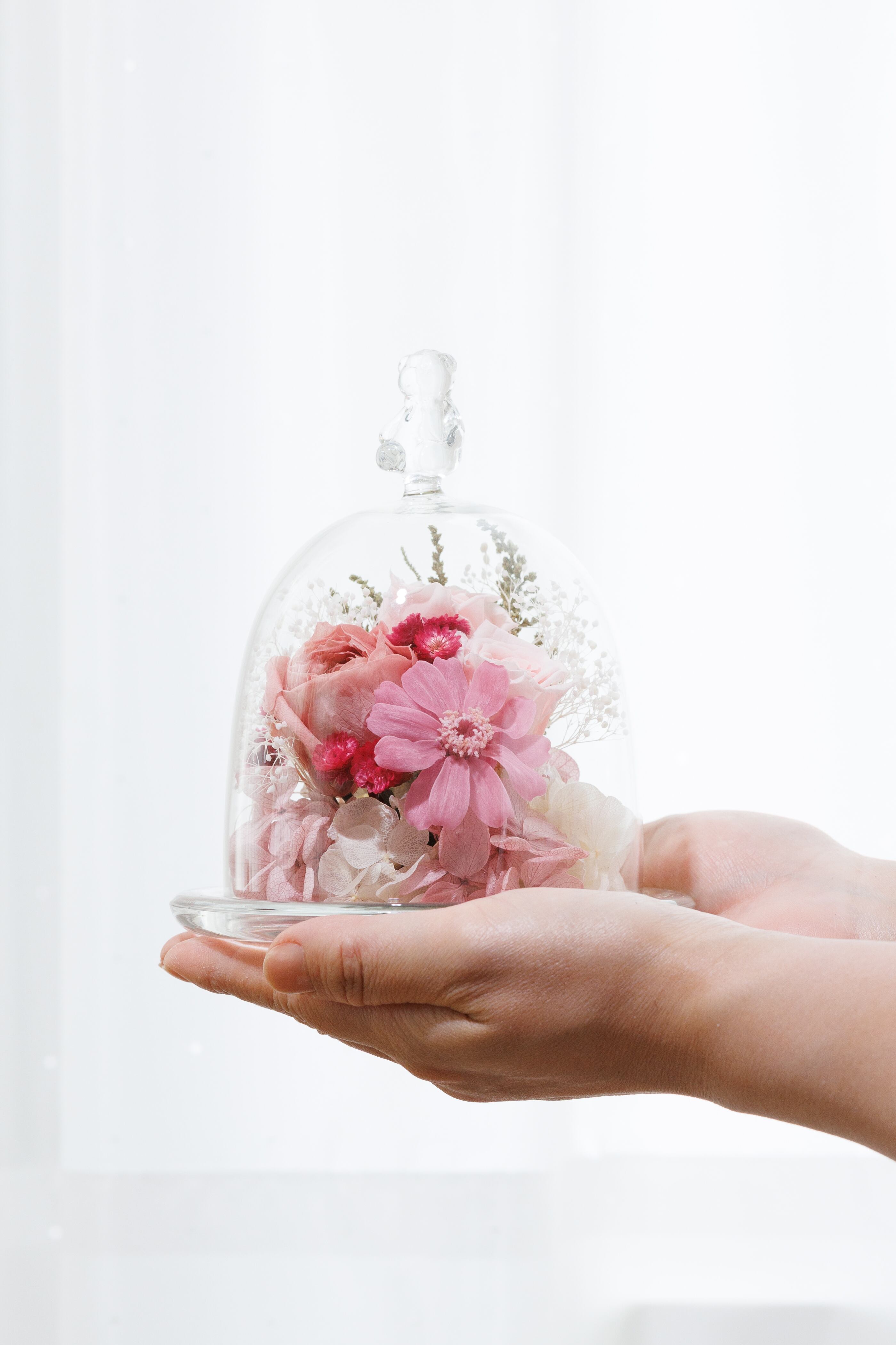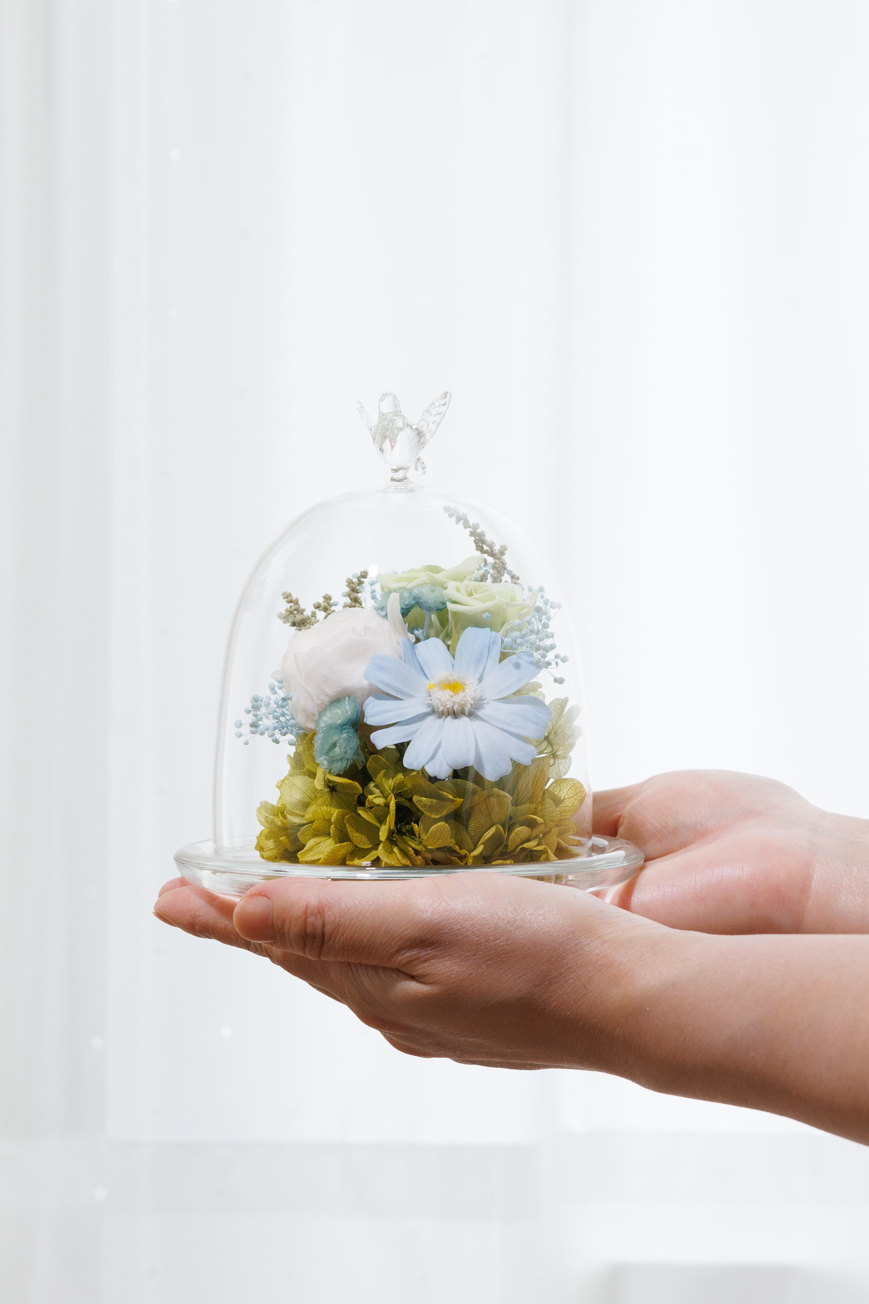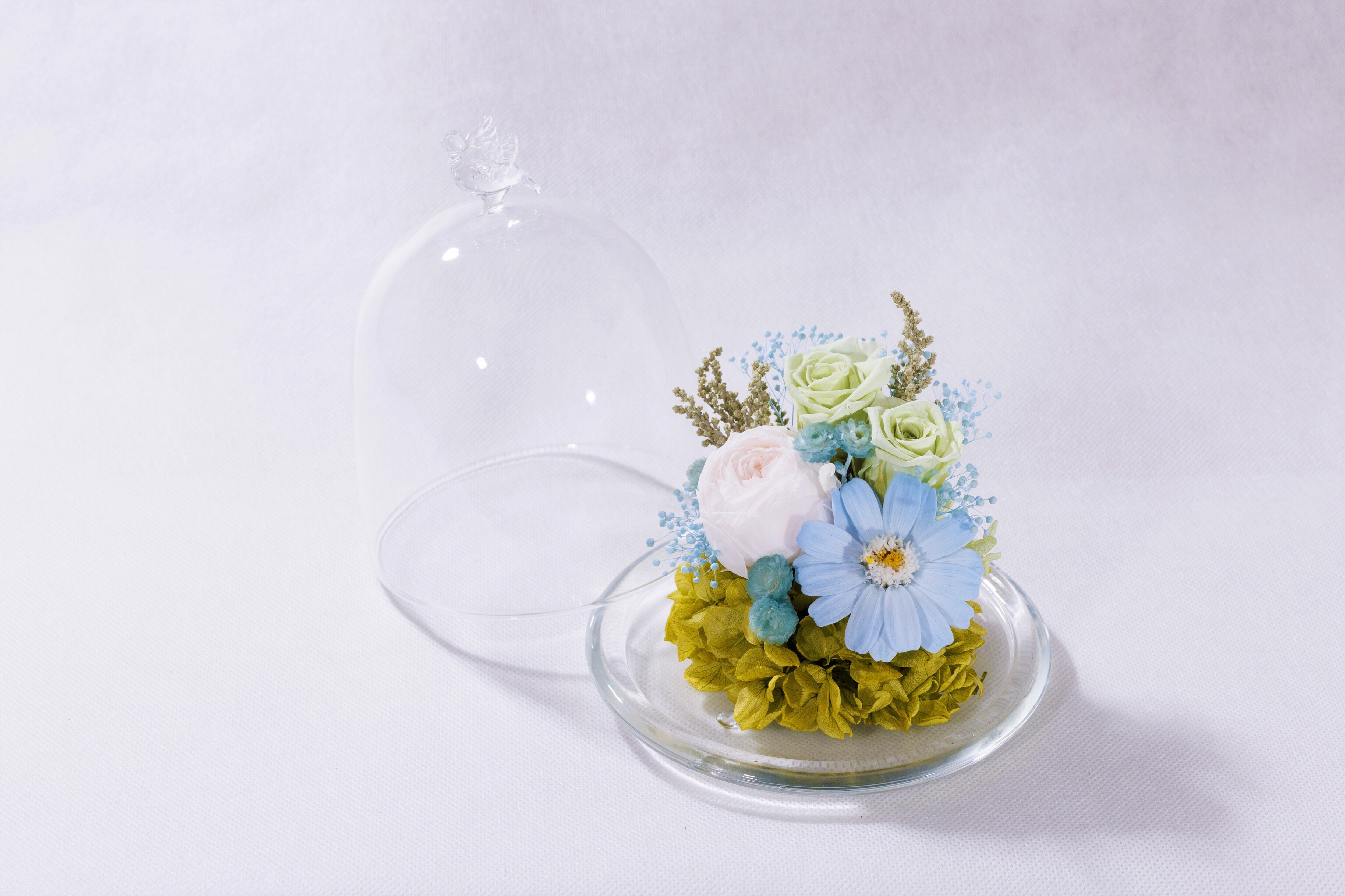 しかし、このようにガラスドームの中に入っているので長い間お楽しみいただけます。